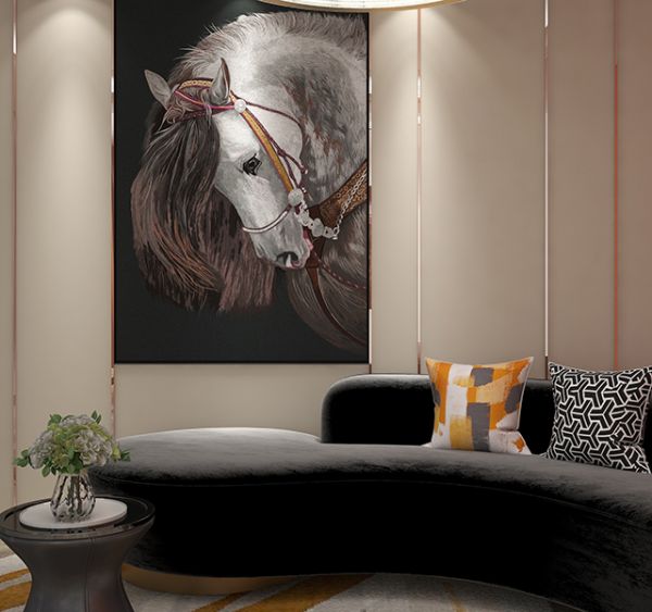 大漠号角起,将军整衣归。一见白马,恍若回到如“八百里分麾下炙,五十弦翻塞外声”般激烈的战场上。二见白马,眼中似有不舍,可是将军持枪至沙场,不知何日破城还的焦虑。本应“白马饰金羁,连翩西北驰”,殊不知,如今的它正在等候一位骁勇善战、所向披靡的战士。