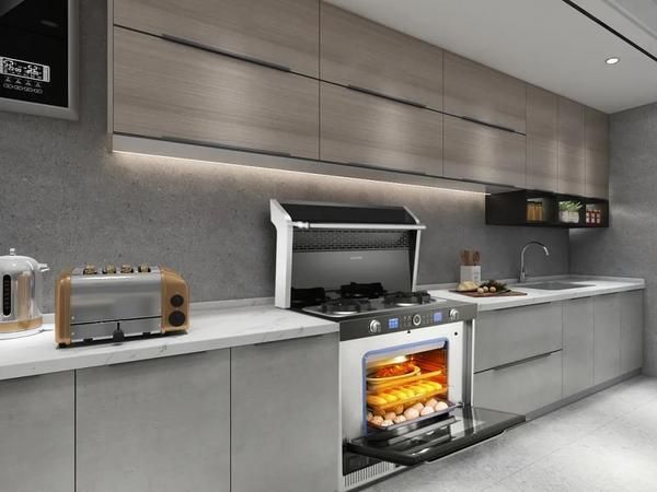 自带蒸烤功能的佳歌集成灶,让你轻松完成多线任务。左边炒菜右边定时煲汤,蒸烤箱还可以蒸面点或烤鸡腿鸡翅。用完早餐汤已煲好,蒸烤箱也差不多到时间,完全不需要提前半小时准备几道菜!