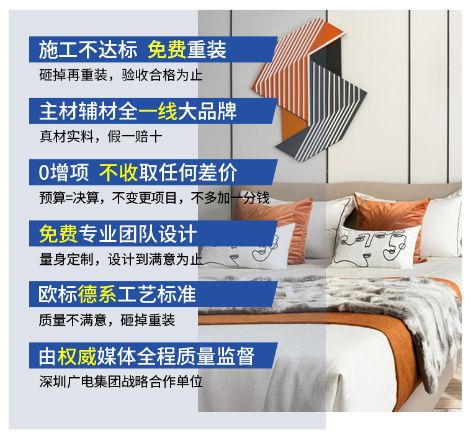 此外,都市壹家装还是无甲醛家居专卖店、全国无甲醛装饰联盟成员单位,所有合作的家装产品甲醛释放量均为“未检出”,产品均配备国家级检测报告,在线溯源,保险公司全程承保,承诺环保不达标负责到底,无论是用材还是工艺都严格把控,合作的百家品牌建材商也都是著名品牌,如:索菲亚定制柜、冠珠瓷砖、柯诺地板、TATA静音木门、德国立乐抗菌管、美国大师漆等百大国际一线品牌,不光是主料,就连辅料也都全部严选大牌材料,真正做到全线无甲醛装饰联盟材料任深圳业主挑选,以身作则诠释了“诚信家装、放心家装“的服务态度。