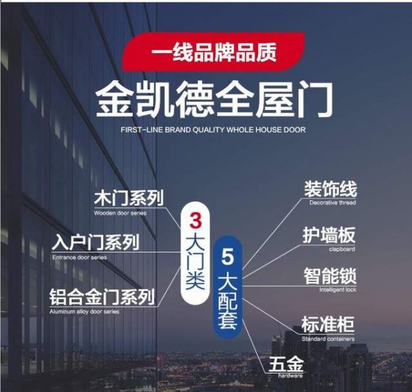金凯德不仅是木门生产者,也是一站式门业集成综合服务商。作为集成门业的开创品牌,金凯德不光在产品质量上业界领先,更是在配套服务上“先声夺人”,成为行业标杆。