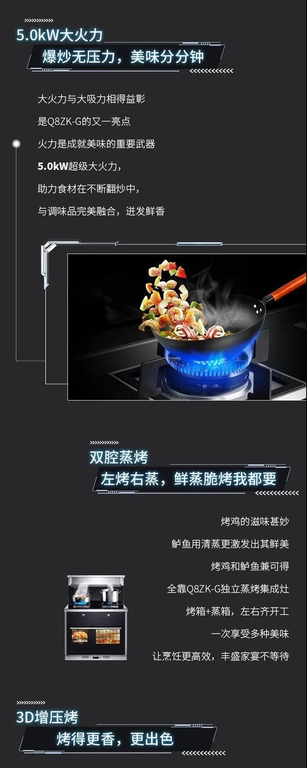 爆品全新升级上市,森歌Q8ZK-G独立蒸烤集成灶来了!双腔蒸烤齐开功、烹饪更高效~