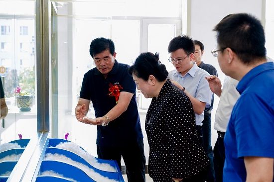 图:姚小蔓等参观白翎羽绒制品公司生产的优质羽绒