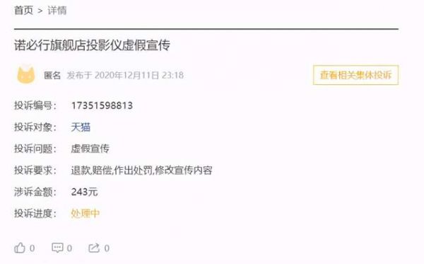 而在黑猫投诉的相关网站上,可以看到诺比行投影涉及参数虚标及虚假宣传的投诉。所以虽然我们可以看到在亮度上这款投影的标注参数很不错,但其实真正的亮度存疑。