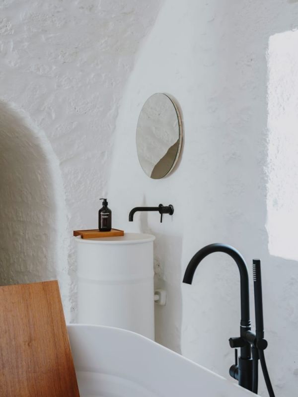 “我们相信酒店的奢华首先是体现在空间,我们的浴室很宽敞,而且配有非常优质的特大号浴缸。”Ostuni露台套房浴室采用了意大利奢华卫浴品牌Agape的Vieques浴缸和同名立柱式洗脸盆。
