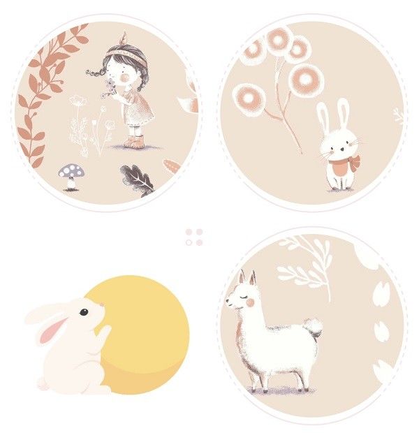 细节之处,设计师通过手绘的简单线条、点状脚印的勾勒便表现出马儿饮水、鸟儿散步的动作,自由排列中,衬托出了主角们的丰富和活力,自由奔放的氛围得到了淋漓尽致的展现。