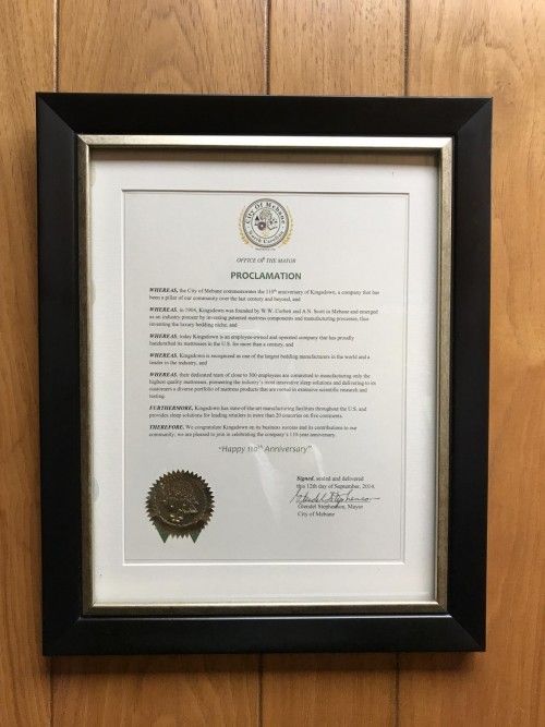 2014年,KINGSDOWN110周年诞辰,美国北卡罗来纳州政府将公司的诞辰日9月12日,命名为“KINGSDOWN日”,以表彰这个百年贵族品牌为人类睡眠事业做出的卓著贡献。同时,也奠定了金斯当KINGSDOWN“美国奢华床具开创者”的地位。