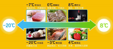 用上宽幅变温室,立马就能明白她的好,食材到手,不用担心亏待他们。按需设温度,太简单了。随便举个例子哈:红酒用8℃,水果设4℃,短期保鲜的肉类放0℃合适,冰激凌在-3℃口感好,-7℃是软冻,-20℃就是保质期长的四星级冷冻啦。