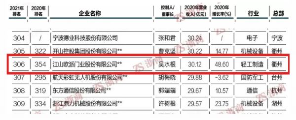 喜讯 | 2021浙商全国500强榜单出炉,江山欧派再度上榜
