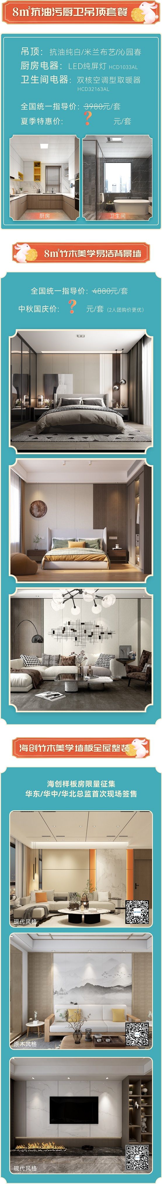 8㎡抗油污厨卫吊顶套餐、8㎡竹木美学墙板易洁背景墙,5000+全屋整装解决方案,更有样板房征集活动,火速报名,预订起来。