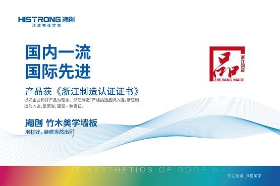 环保是大家选择装修最关心的问题了,海创竹木美学墙板产品获得浙江制造认证,同时产品趋于零甲醛,经权威部门检测,甲醛释放量仅为0.01mg/m³,高于国际严苛检测的E1级,优于10倍国家环保标准,装修过后几乎没有味道,可满足更多白领群体即装即住装修需求。与此同时,其快装、环保无味的特性也深受工程用户喜爱,在酒店、宾馆、学校、办公楼也有诸多运用。