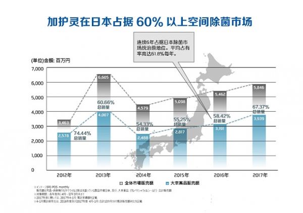 从2008年日本大幸药品株式会社研发并生产加护灵至今,加护灵已经成为日本家庭和医院手术室、学校都广泛使用的空间除菌除甲醛产品。据日本最大市场调查机构Intage统计,2018年4月至2019年3月,加护灵占据日本同类产品81.6%的市场份额;日本调查公司CITATIO统计得出,76%的日本医师推荐加护灵作为家用空间除菌产品。而伴随着疫情的无限延期,加护灵也正悄悄走进中国消费者的家中,人们正在逐渐接受加护灵这种“利用二氧化氯除菌除甲醛来实现空间健康”的新防疫理念。