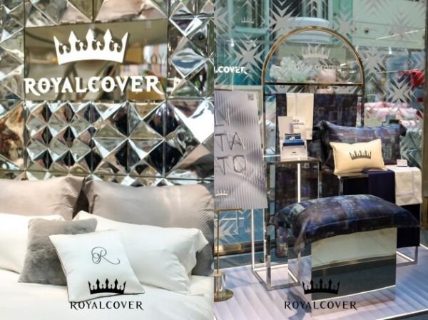 空间视觉正如设计概念用钻石切面来设计的主题视觉墙面,半透明的品牌光芒PATTERN虚实相映,LED灯光穿梭整体空间,如链接未来的时间隧道,银色的变化空间折射虚化成背景,烘托出最新概念设计的罗卡芙家纺的时尚家居单品,优美地被陈列师有序地展示出来,香气十足的白色玫瑰萦绕给酷炫的视觉空间增添柔美。