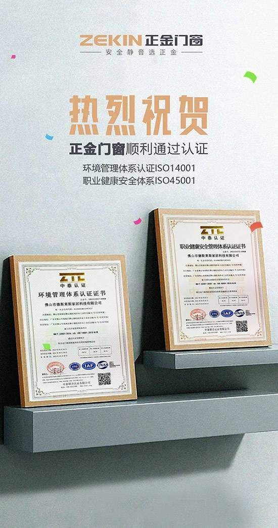 此次顺利通过ISO14001和ISO45001双标准认证的评定,意味着正金门窗在资源节约、环保生产、可持续发展和职工安全健康管理等方面步入了现代化、标准化、规范化的高水平阶段,标志着正金门窗在品牌生产、管理的过程中里程碑式的新进展,为企业的可持续发展奠定坚实的基础。