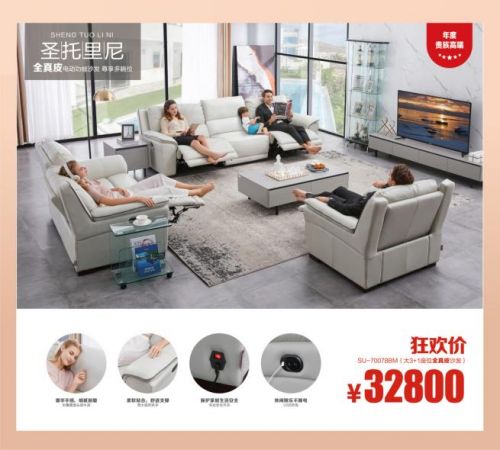 悠情朗姆选用巴西青壮年黄牛皮,除了舒适柔韧耐磨等特点,看起来也更加青春时尚,双段式靠包,软弹饱满,多角度可调,舒享惬意生活。