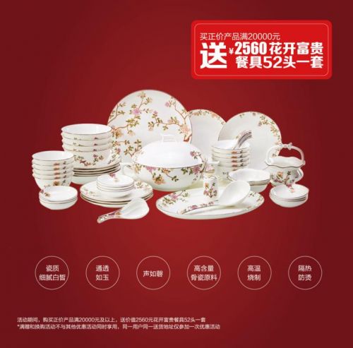 1.买正价产品满20000元,送¥2560花开富贵餐具52头一套