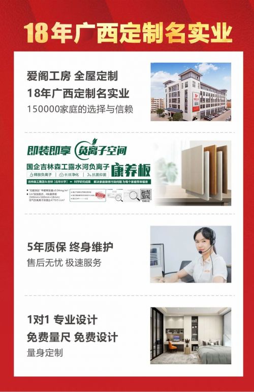成立于2003年的爱阁工房全屋定制,是一家集研发、设计、生产、 销售、服务为一体的全屋定制家居企业。总部生产基地位于中国(广西)自由贸易试验区南宁市良庆区,建筑面积超40000㎡,并建立了2000㎡的家居生活体验中心。产品涵盖了橱柜、衣柜、榻榻米等全屋定制家具,并逐渐延伸至沙发、寝具、木门等硬装、软装配套产品。拥有近百家直营店及加盟专卖店,覆盖广西全区多个主要城市,市场战略布局成功进军黔、滇、琼等地区。