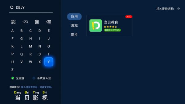 以上应用都可通过电视下载或者当贝市场安装,如:通过当贝市场搜索“DBJY”首字母就能直接安装!