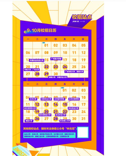 你还想线下了解更多吗?没问题,近期,林氏木业也在积极走进全国各地高校,举办“潮酷范儿”的线下校园宣讲!9月22日-24日,林氏木业已经走进中南林业科技大学、广州美术学院、广东财经大学和湘潭大学;接下来,林氏木业还将一路向西、一路向北,走进兰州大学、哈尔滨师范大学等。母校不在上述?没关系,关注微信公众号“林氏范”,随时查询其他院校站点和更多招聘信息,期待我们的相遇!