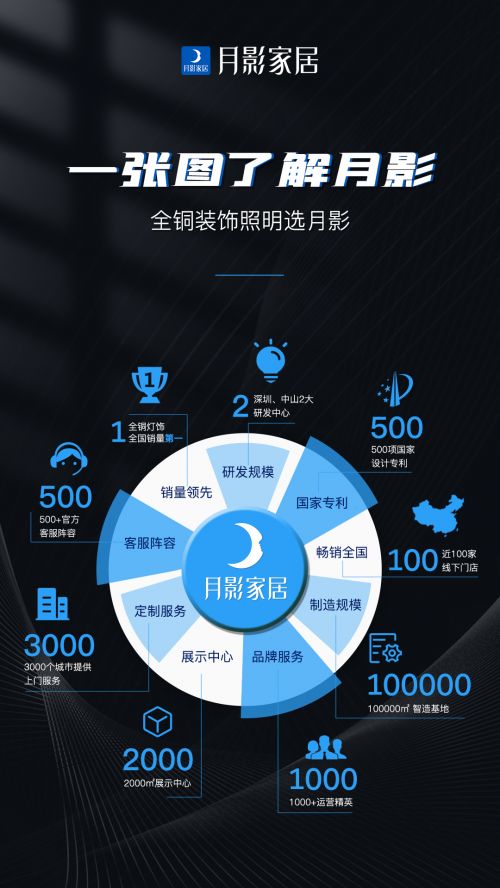时尚年轻态品牌的国民化落地为月影家居创造了连续九年荣膺全铜灯饰全国销量第一的佳绩。月影迅速崛起为“家居行业新势力”,积极提升装饰照明灯具在消费者家装需求中的角色地位。这条新零售之路任重道远,月影家居正在诚心招募最强合作服务商前来洽谈,精诚协作之下才能带来装饰照明的光明未来,携手并肩深化泛家居新零售的全生态布局。