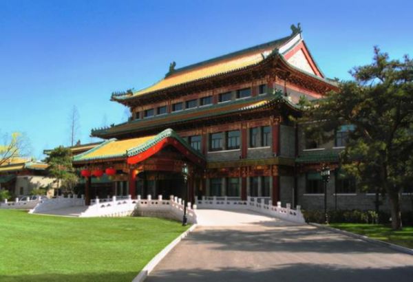 钓鱼台国宾馆坐落在北京西郊古钓鱼台风景区。古钓鱼台昔日为帝王游息的行宫,是北京著名的园林之一,迄今已有八百多年的历史。1958年,为庆祝中华人民共和国建国十周年并接待应邀来华参加国庆的一些国家元首和政府首脑,国家决定选古钓鱼台风景区为址,并责成外交部具体组织、筹划,营建国宾馆,并以其地为名,定名为钓鱼台国宾馆。