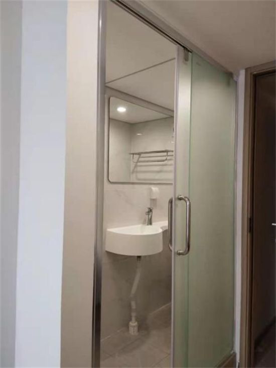 该项目公寓的卫生间装修采用的是瓷砖体系整体卫浴,用一体化防水底盘加上聚氨酯复合瓷砖构成框架,配上各种功能的洁具形成独立卫生单元,在有限的空间内可达到优良的整体效果,小巧精致,功能俱全,适用度高,品质感强!