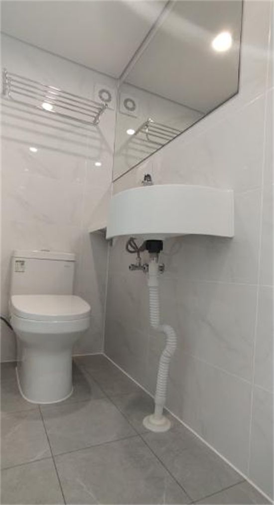 该项目共计500套瓷砖体系整体卫浴,从量尺、下单、生产到正式交付仅仅只用了不到2个月的时间。全程干法作业,建筑主体和内装分离,采用管线分离工艺,无需开墙凿洞。另外整体卫浴采用一体化防水底盘,杜绝渗漏,无需再做二次防水,大大减少施工作业量,缩短施工周期。