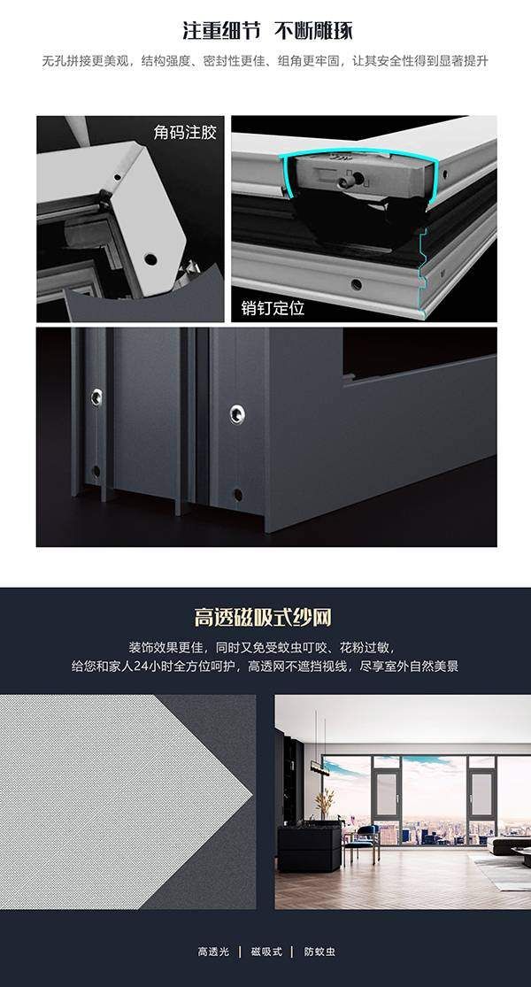 欧铂曼门窗采用优质6063原生铝型材、安全钢化玻璃、进口五金配件、科学独特的腔体结构、多道密封设计、整窗销钉注胶工艺在隔音、隔热、安全上能达到更好的效果,双层中空钢化玻璃可有效降低噪音干扰,节能环保。
