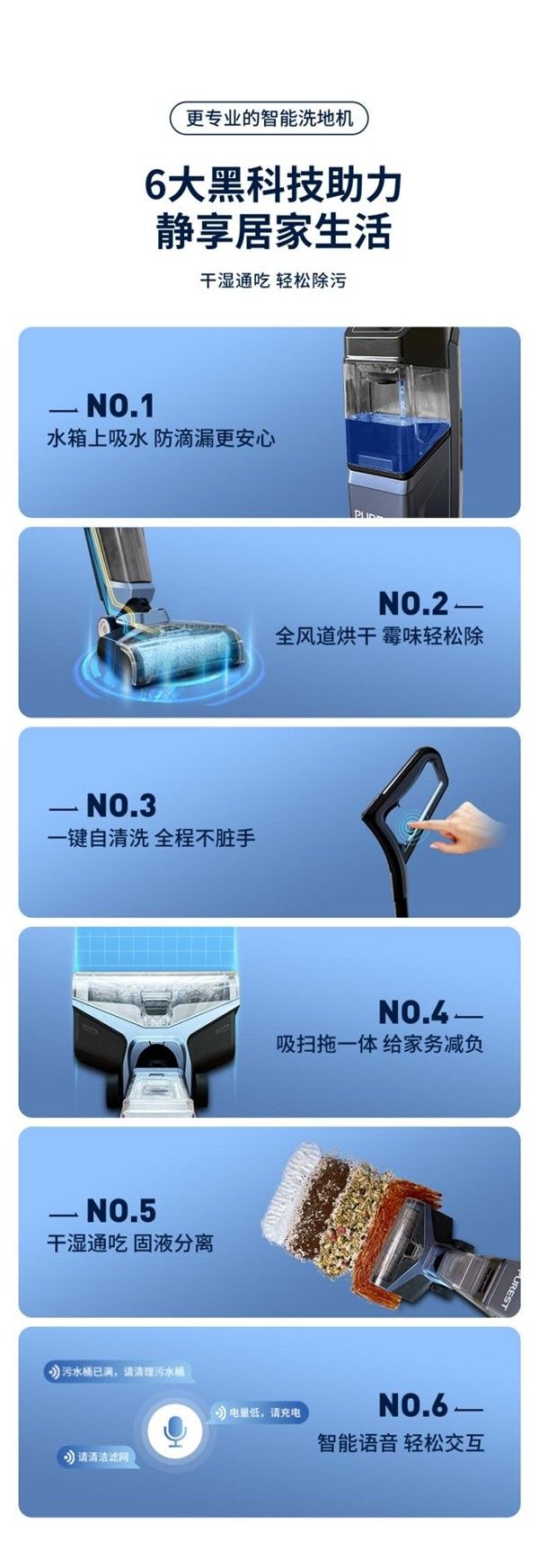 不论是日常996辛劳的打工人,还是内持繁琐家务的妈妈们,都需要这么一台为地面清洁减负的洗地机,有了洗地机,扫地、吸地、拖地、洗拖把都可以一次性完成,让大家从繁杂卖力的地面清洁中解脱出来,让忙碌的你我他都能实现工作家务两不误的美好净生活!