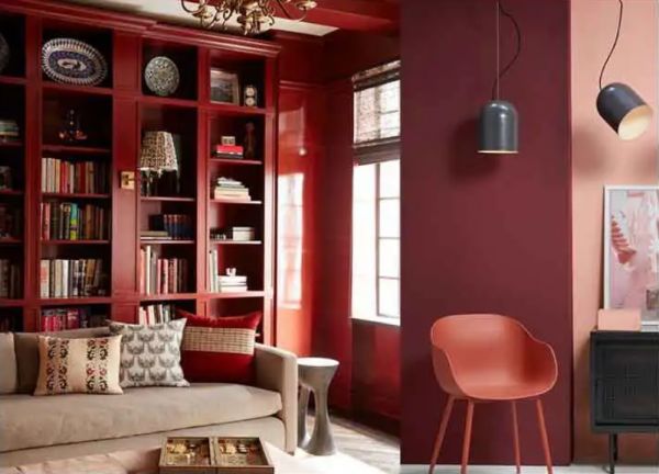 枫叶红一种温暖、复古又充满文艺气息红棕色调。在如今渐渐寒冷的秋季,给家里带来丝丝暖意,也是秋季里一抹亮丽离风景线。把它用在家居中,枫叶红可以作为主色调来,比如用做墙面,大面积的色彩亮丽又温馨,与柔软的软装一起搭配,更突显活力。