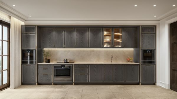 英国高端家具制造商 Smallbone 以为最精致的私人住宅提供完美设计和精湛工艺而闻名,此次与莱佛士OWO公寓的合作是其在伦敦的首个主要项目。公寓的每个厨房都采用手工打磨的灰色调,融入橡木贴面橱柜、胡桃木漆内饰和古董黄铜细节,而蜂蜜色调的巴西泰姬陵石材台面与较暗的色调形成鲜明对比;同时,玻璃橱柜的运用也完善了公寓精致氛围。厨房采用黄铜基底和无烟煤色饰面的 Gaggenau 电器,营造出现代奢华感。