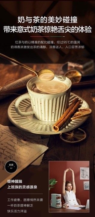 午后,是灵魂想要小憩,但肉体却只能应对无数会议的时间。忙碌空隙,用Master Kitchen冲泡大师制作一杯意式奶茶,可以给身心恰到好处地安慰。95℃精配水温调和下,配比精准的红茶与奶互相交融。一边品尝口感醇香又健康美味的意式奶茶,一边在会议室灵感无限,为这个工作日的下午带来漂亮的工作战绩与舒爽的工作心情。