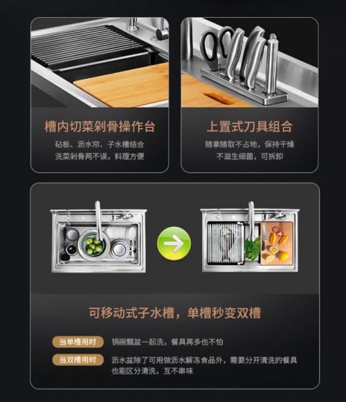 居民生活水平不断提升,水槽也在不断升级,针对以上痛点,选择更实用,设计更科学的才是王道!那么如何挑选一款能提升品质与幸福感的水槽,今天就给大家推荐集成灶十大品牌、厨电行业十大品牌科恩净洗中心X系列集成水槽。