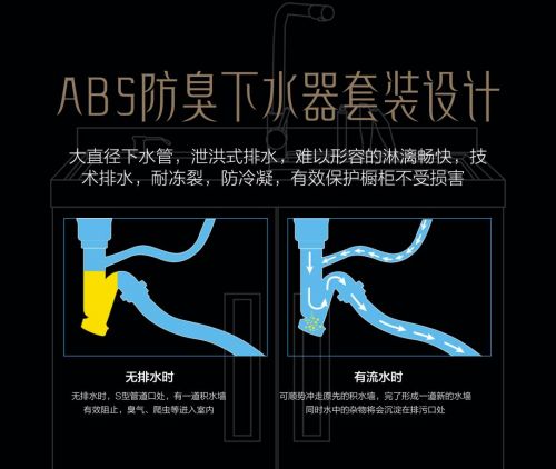 针对清洁难题,科恩集成净洗中心手到擒来,旋风式排水下水管,多重滤渣排水更通畅,ABS防臭下水器套装设计,耐冻裂防冷凝,有效保护橱柜不受损害。