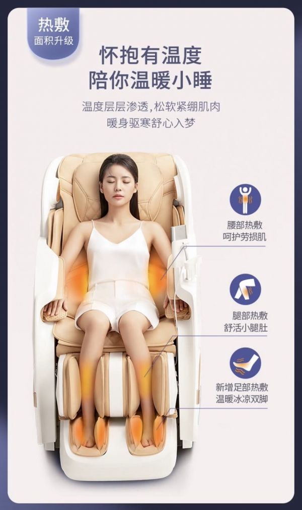 在步入冬季的11月见面,奥佳华S级怀抱大师OG7806认为你更需要的,还有温暖。由此,它贴心设置了腰部热敷,可呵护你的劳损肌肉;腿部热敷,可舒活你的小腿部肌肉;足部热敷,温暖你冰凉的双脚。用温度让这个拥抱有暖意、有心意。