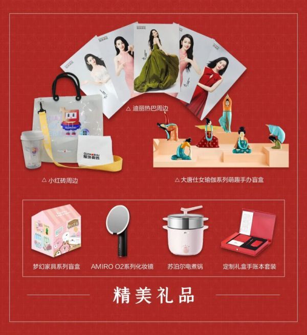 逛展期间,完成每一个空间拍照打卡任务,即可获得「中国人的家定制版明信片」一组,集齐7大空间专属印章,还能现场参与抽奖!现场更多品牌代言人迪丽热巴周边、大唐仕女瑜伽系列萌趣手办盲盒、小红砖周边等礼品,就等你们带回家~