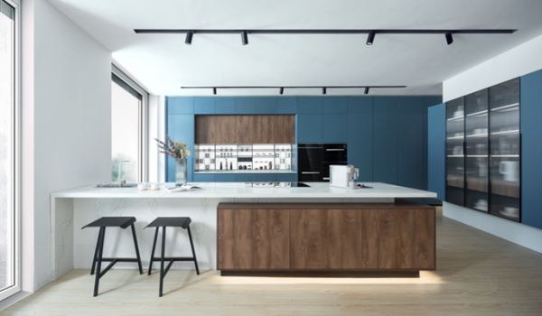 对厨房空间的创新性规划使厨房更加圆满。柏厨“云澜”分区明确,空间充足的储存区满足客户对各类食品储存的需求,使瓶瓶罐罐均有归宿。多个洗涤区使烹饪准备不再是一人操作,充足的洗涤空间,一家人共同享受准备菜品的快乐;两个备餐区方便家人同时操作,增加互动空间,减少拥堵感;一体化的岛台式烹饪区,可以满足多人备餐,一起享受烹饪的时光的情感需求。便餐区为朋友小聚、家庭成员交流互动提供充足空间;超强的小家电收纳空间,清晰的收纳分区使客户再也不怕找不到烤箱手套、烤架等小物品;古藤棕的饰面纹理搭配石纹岛台,岛台采用地柜下和台面下隐藏灯光,增加柔和、自然的亲切感,让客户的视觉感受更加舒适。闲暇时分,男主人在备餐区备菜,偶尔一抬手将切好番茄送到爱人的面前;女主人看着烹饪区的热锅,等待新鲜出炉的那一刻,舀一勺汤再喂给男主人;两人偶被中岛台旁小朋友的牙牙学语所吸引,左手操持美食,右手尽享醇熟生活,遇见生活的无限美好。