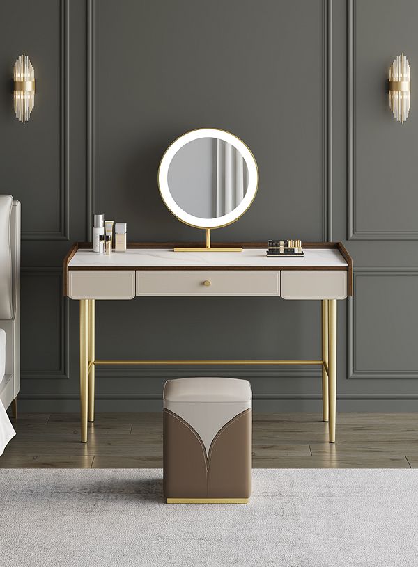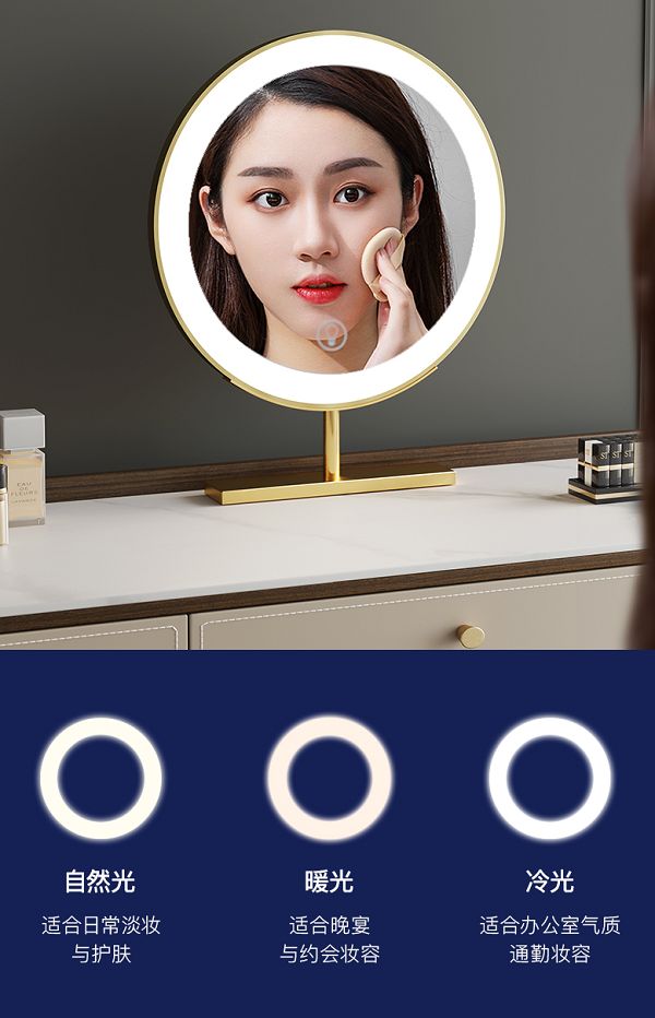 月影岩板梳妆台甄选马鞍皮围边,具有光泽触感的同时防水防污。搭配智能LED触控三色状镜,成像清晰,每款妆容尽收眼底,360度照亮你的美。