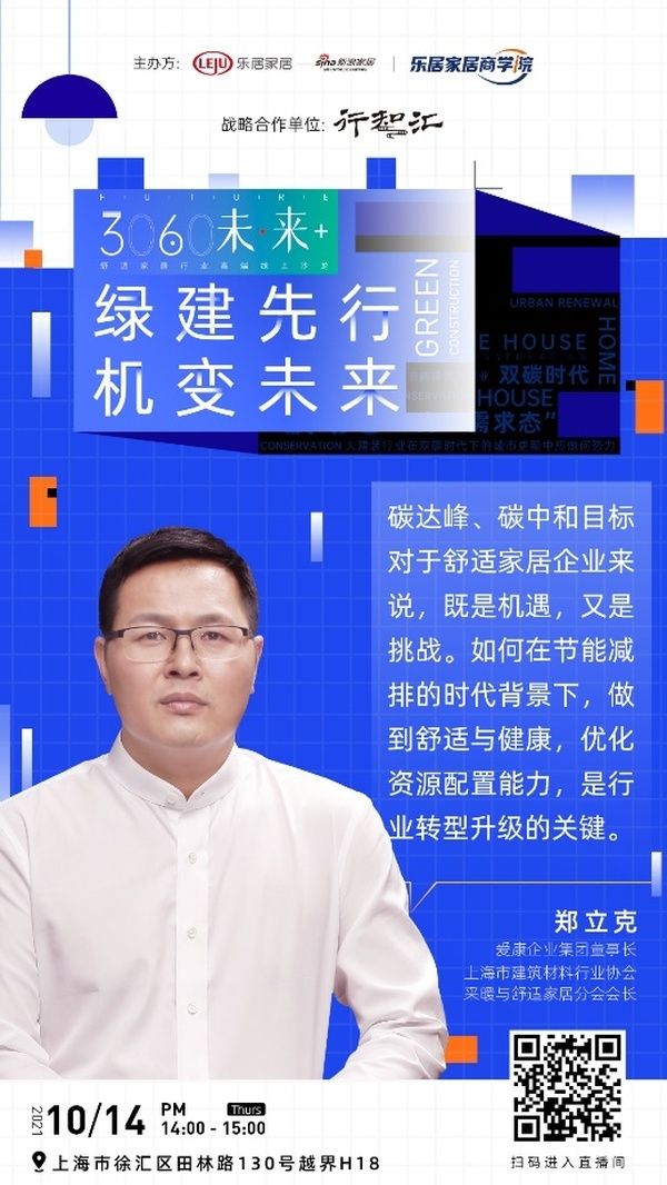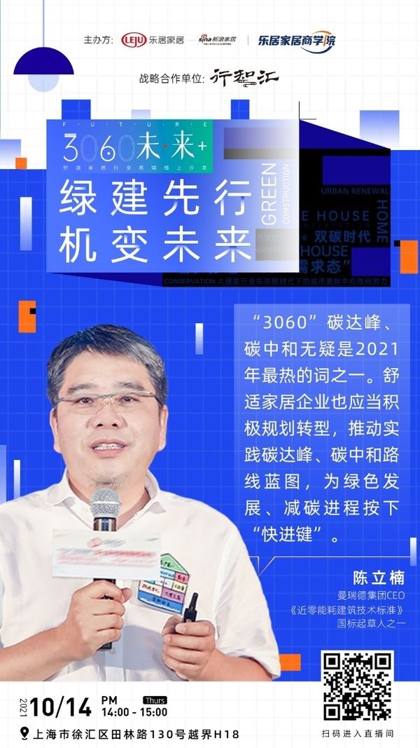 围绕能源结构调整的时代背景,新浪家居、乐居商学院与行知汇开启战略合作,共同策划《3060未·来+》舒适家居行业高端系列沙龙。聚焦绿色建筑、绿色城市,围绕建装行业、企业面临的发展机遇和变化,每期将邀请行业内资深专家、学者与企业家共同参与,探讨共建健康生活、行业跨界融合发展的前沿话题,助力企业在新一轮双“碳”风口下抢占行业制高点,后续精彩内容,敬请持续关注。