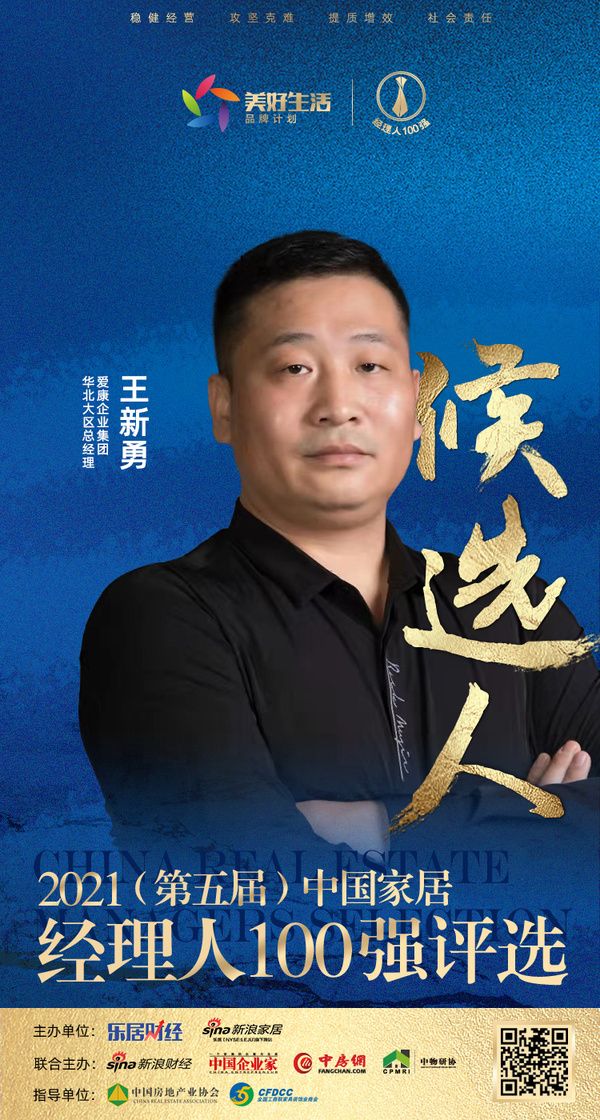 新浪家居讯 2021年10月11日,由新浪家居、乐居财经主办,新浪财经、中国企业家、中房网、中物研协联合主办的“韧性——2021(第五届)中国家居经理人评选”正式启动,网络报名同步开启。10月18日,爱康企业集团华北大区总经理王新勇获提名,成为“2021中国家居经理人100强”候选人。