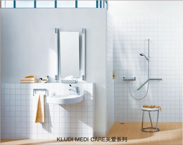 防摔防磕碰,安全高卫生,长龙头把手特配防滑罩,实现手肘移动开关水流 ,无障碍升降杆、无障碍扶手,经TüV测试认证的拉力为130kg。