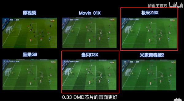 虽然同是1080P的分辨率,但显示芯片的大小就注定了0.23DMD芯片的画质要落后于0.33DMD芯片。(极米Z6X为0.33DMD)