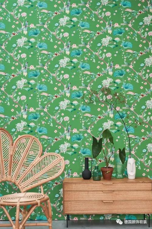 当设计师把这个绿色融合在壁纸纹样中
