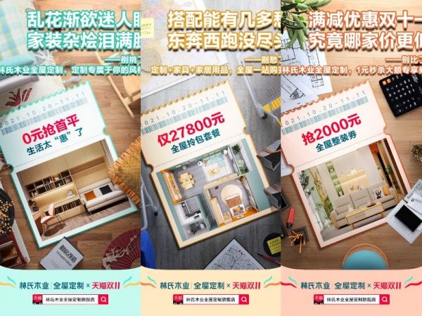 这个双十一期间,也将同步迎来林氏木业全屋定制全国十五家门店的盛大开业,活动期间,消费者只要在线上预约附近门店体验服务,即可享受专属百元开业红包,同时还推出“主题儿童房”,“全屋定制套餐”,“全屋拎包套餐”等五大套餐组合,从单一空间到全屋整装定制空间方案,满足年轻用户对个性化生活方式的所有幻想。并且还有免费测量与设计的优质服务,让消费者可以节省更多精力和时间参与到自己的爱家个性搭配。