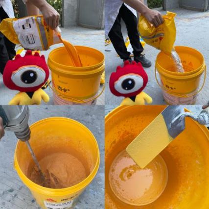 三组份防水浆料操作简单,只需按照说明书将A组份与B组份搅拌,即可完全融合,且不会有结块现象,自己使用电动搅拌器操作也可轻松完成。