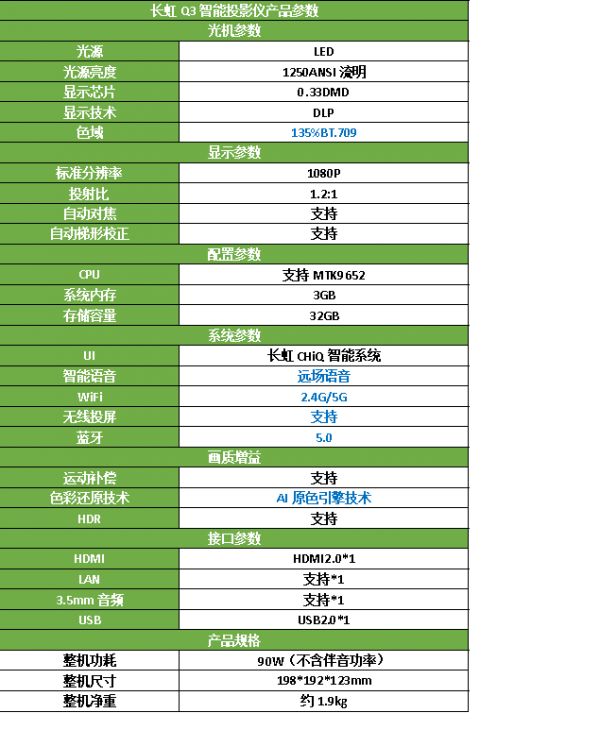 如今,这个品牌也在打造着自己的国潮新品,长虹Q3智能投影仪就是其中之一。长虹Q3搭载了MTK9652这款四核64位处理器芯片,运行速度和图像处理能力都更快更稳定,搭配长虹智能电视系统,运行丝般顺滑,是当之无愧的行业旗舰级智能投影仪。