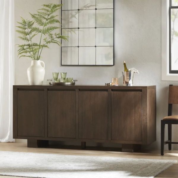 与之搭配的餐边柜,收敛锋芒,隐藏式一体成型拉手槽,让杂乱无章的一切收归于无形。对于家来说,它们奠定了家的氛围——厚重、成熟、安静、实用。