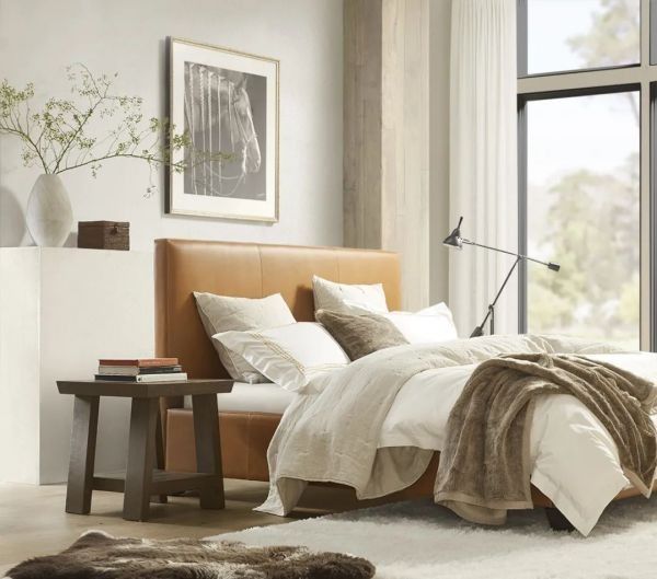 在卧室空间,Atwood边几则可以灵活胜任床头柜的作用,搭配Seaview皮床,温暖的中性棕调与日常光景交相呼应,贴近自然之外,也给到了自己放松的状态