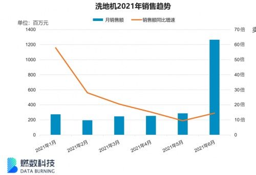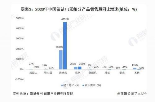目前国内清洁电器主要分为扫地机器人、手持类清洁电器和商用机器人三大产品线,洗地机作为手持清洁电器的子品类之一,近年来发展格外亮眼。2020年洗地机线上渠道销售额的同比增速为1885%,线下同比增速为4632%,2021H1实现了同比+887.9%的跨越式发展。