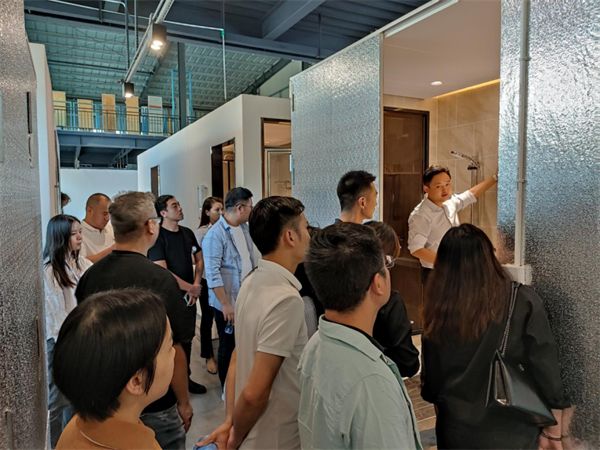 随后,我司邀请全球共德与研究院等一行人参观了公司展厅及生产车间,对整体卫浴、全钢爬架等产品和工艺技术再次进行了深度交流。