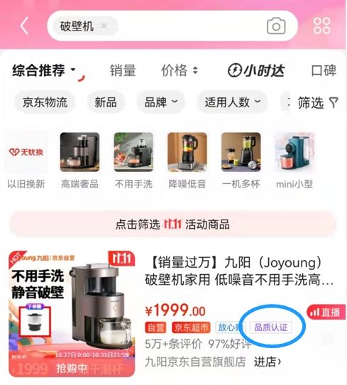 最终,优选29款产品来自不同品牌的产品入选京东电器品质工程认证榜单。目前,“洗地机品质榜”、“破壁机品质榜”已在京东APP上线,11.11期间消费者可以在京东APP首页搜索“品质认证”,进入页面找到榜单,或搜索“洗地机”、“破壁机”,认准标有紫色品质认证标签的商品,省时、省心选购相关产品。